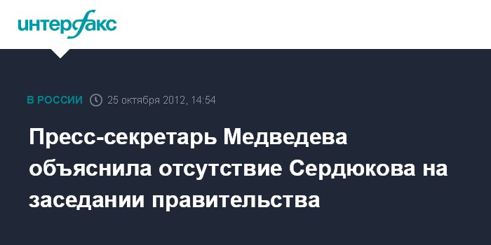 Пресс-секретарь Медведева объяснила отсутствие Сердюкова на заседании правительства