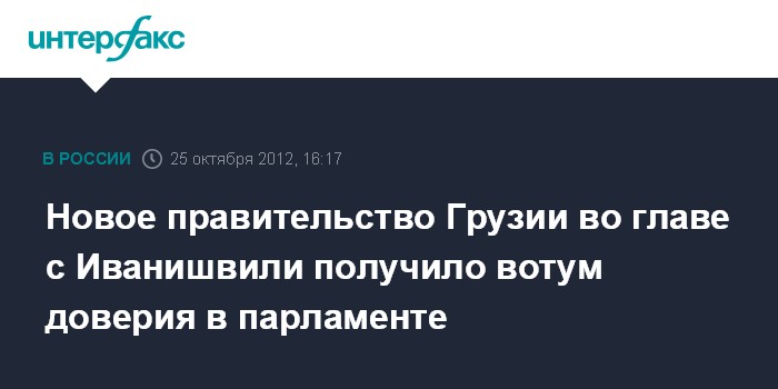 Тбилиси. 25 октября. INTERFAX.RU - Парламент Грузии в четверг на пленарном заседании объявил вотум доверия новому составу кабинета, возглавляемого премьер-министром Бидзиной Иванишвили.