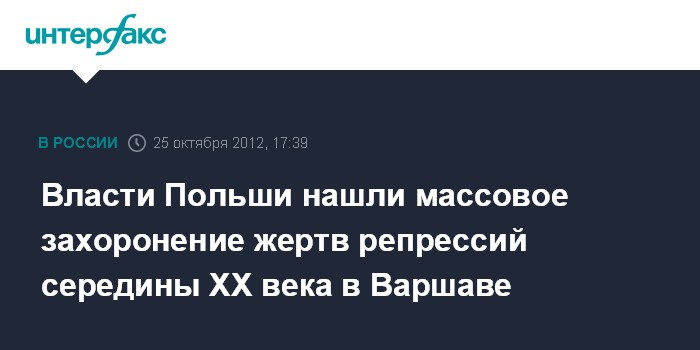 Варшава. 25 октября. INTERFAX.RU - На военном кладбище Повонзки в столице Польши Варшаве обнаружены 117 тел жертв репрессий, захороненных в период с 1948 по 1956 гг., сообщили в четверг в польском Институте национальной памяти, который занимается расследованием преступлений против польского народа.