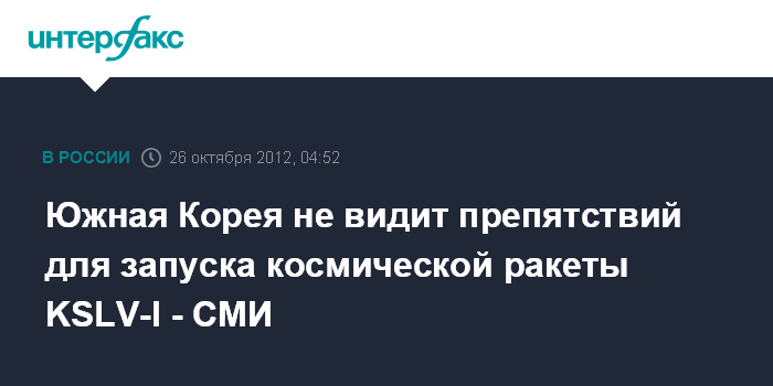 Южная Корея не видит препятствий для запуска космической ракеты KSLV-I - СМИ