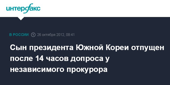 Сеул. 26 октября. INTERFAX.RU - Сын президента Республики Корея Ли Мен Бака Ли Си Хен вернулся домой после 14 часов допроса у независимого прокурора, расследующего скандал, связанный со строительством дома для проживания главы государства по истечении его президентских полномочий, сообщают местные СМИ в пятницу.