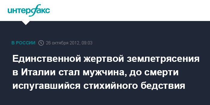 Единственной жертвой землетрясения в Италии стал мужчина, до смерти испугавшийся стихийного бедствия