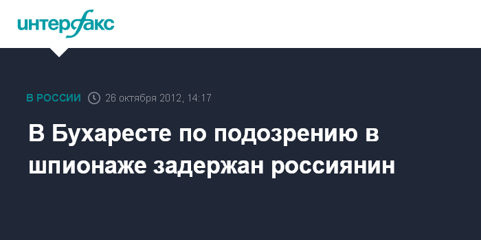 Бухарест. 26 октября. INTERFAX.RU - Гражданин России задержан в пятницу в аэропорту Бухареста по подозрению в промышленном шпионаже, сообщает румынская прокуратура.