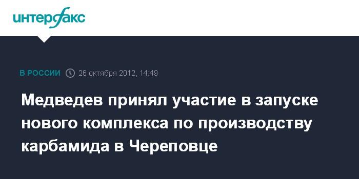 Медведев принял участие в запуске нового комплекса по производству карбамида в Череповце