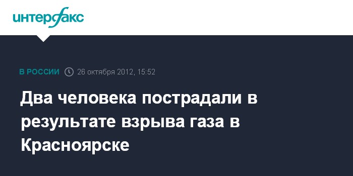 Москва. 26 октября. INTERFAX.RU - Два человека пострадали, один числится пропавшим без вести после взрыва бытового газа в жилом доме в Красноярске, сообщили "Интерфаксу" в ГУ МЧС по региону.