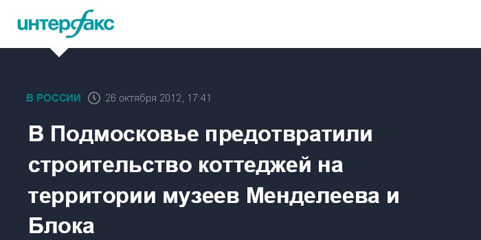 В Подмосковье предотвратили строительство коттеджей на территории музеев Менделеева и Блока