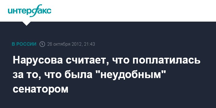 Нарусова считает, что поплатилась за то, что была "неудобным" сенатором