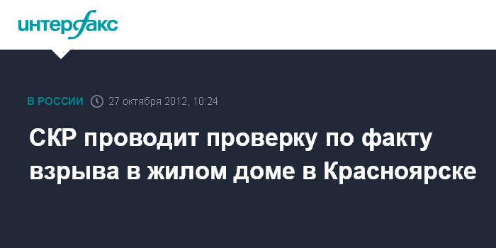 Чита. 27 октября. INTERFAX.RU - Следственное управление СКР по Красноярскому краю проводит доследственную проверку по факту взрыва газа в жилом многоквартирном доме в Красноярске, в результате которого пострадали два человека. "Доследственная проверка проводится, в ее рамках будет назначено исследование, которое поможет установить причину", - сообщили агентству "Интерфакс-Сибирь" в пресс-службе краевого ведомства.