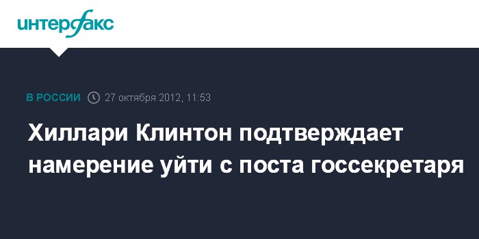 Вашингтон. 27 октября. INTERFAX.RU - Госсекретарь США Хиллари Клинтон подтвердила намерение покинуть свой пост после президентских выборов, однако она не сделает этого, пока ей не найдут замену, сообщает газета "Вашингтон пост".