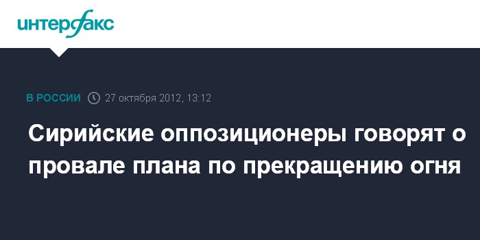 Бейрут. 27 октября. INTERFAX.RU - План спецпредставителя ООН и ЛАГ по Сирии Лахдара Брахими по установлению перемирия на время мусульманского праздника Ид аль-Адха провалился, заявил в субботу глава военного совета Свободной сирийской армии (ССА) в Алеппо Абдель Джаббар аль-Окайди. "Это провал для Брахими. Эта инициатива была обречена на провал еще до ее начала", - цитирует его слова агентство АФП.