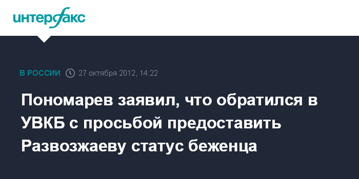 Пономарев заявил, что обратился в УВКБ с просьбой предоставить Развозжаеву статус беженца