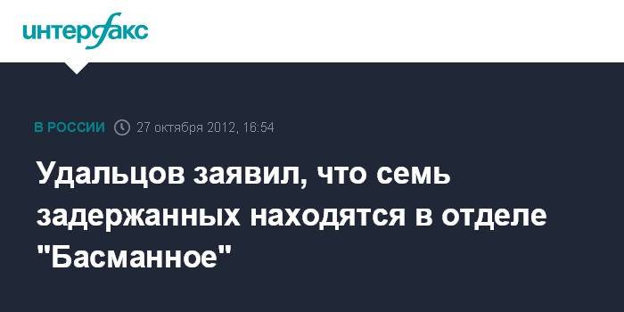 Москва. 27 октября. INTERFAX.RU - Семь участников субботней акции оппозиции в центре Москвы, в том числе лидеры, доставлены в отдел МВД "Басманное", сообщил координатор "Левого фронта" Сергей Удальцов. "Сейчас здесь помимо меня Алексей Навальный, Илья Яшин и еще четыре человека. Пока не ясно, что нам будут вменять", - сказал С.Удальцов в субботу "Интерфаксу" по телефону.