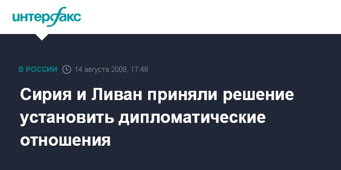 Дамаск. 14 августа. INTERFAX.RU - Президенты Сирии и Ливана договорились установить дипломатические отношения на уровне послов. Такое решение было принято в знак улучшения отношений между двумя странами в ходе визита президента Ливана Мишеля Сулеймана в Дамаск.