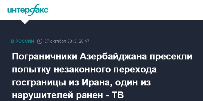 Баку. 27 октября. INTERFAX.RU - Сотрудники Государственной пограничной службы Азербайджана пресекли 26 октября попытку незаконного проникновения на территорию республики вооруженной группы из Ирана, сообщил в субботу азербайджанский телеканал ANS.