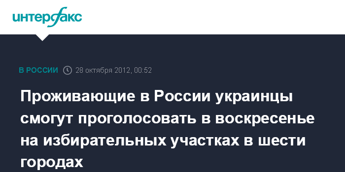 Проживающие в России украинцы смогут проголосовать в воскресенье на избирательных участках в шести городах