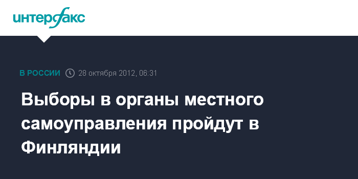 Хельсинки. 28 октября. ИНТЕРФАКС - В Финляндии в воскресенье пройдут выборы в органы самоуправления. Избирательные участки откроются в 9.00 и закроются в 20.00 по местному времени.