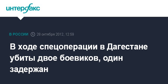 Махачкала. 28 октября. INTERFAX.RU - По уточненным данным, в доме на Юго-Западной улице в Хасавюрте были блокированы трое боевиков, один из них сдался властям, двое убиты в ходе штурма, сообщил "Интерфаксу" источник в правоохранительных органах Дагестана.