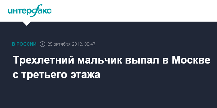 Трехлетний мальчик выпал в Москве с третьего этажа
