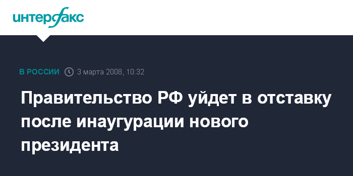 Правительство РФ уйдет в отставку после инаугурации нового президента
