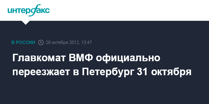 Главкомат ВМФ официально переезжает в Петербург 31 октября