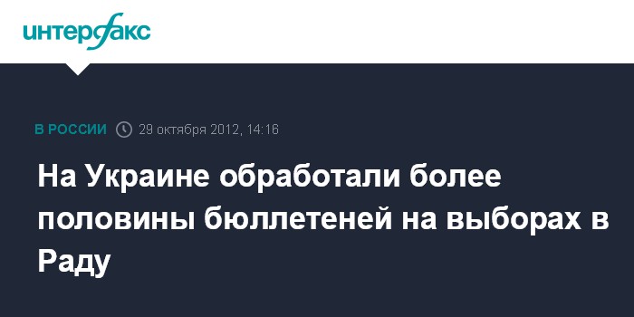 Киев. 29 октября. INTERFAX.RU - Центральная избирательная комиссия (ЦИК) обработала 50,12% избирательных бюллетеней.