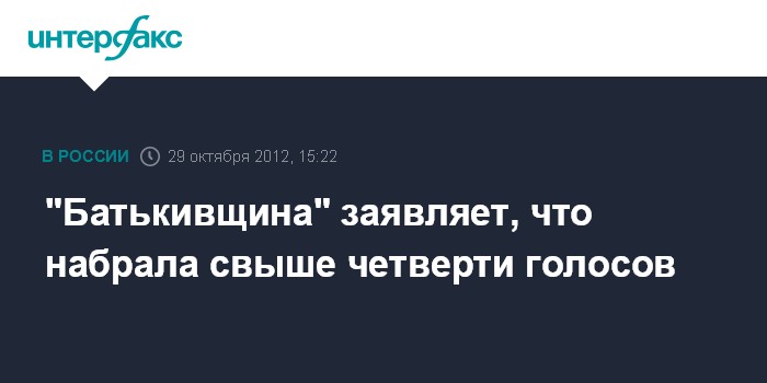 Киев. 29 октября. INTERFAX.RU - Объединенная оппозиция "Батькивщина" провела параллельный подсчет голосов на выборах в Верховную Раду Украины, которые прошли 28 октября, по партийным спискам.