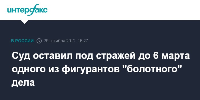 Суд оставил под стражей до 6 марта одного из фигурантов "болотного" дела