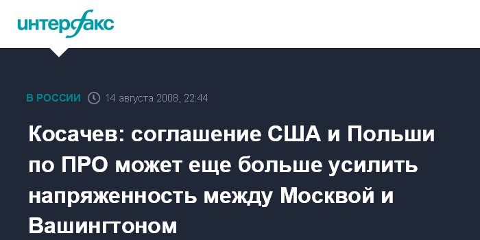Косачев: соглашение США и Польши по ПРО может еще больше усилить напряженность между Москвой и Вашингтоном