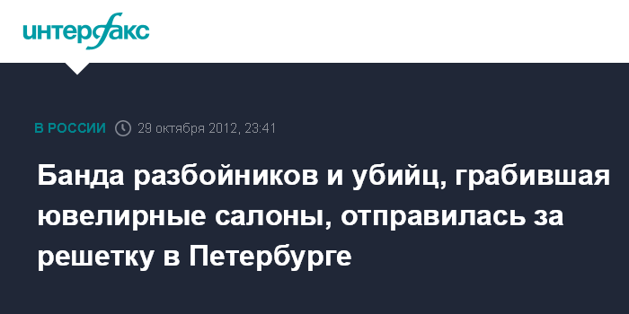 Банда разбойников и убийц, грабившая ювелирные салоны, отправилась за решетку в Петербурге