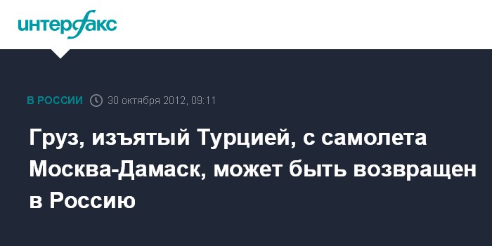Груз, изъятый Турцией, с самолета Москва-Дамаск, может быть возвращен в Россию