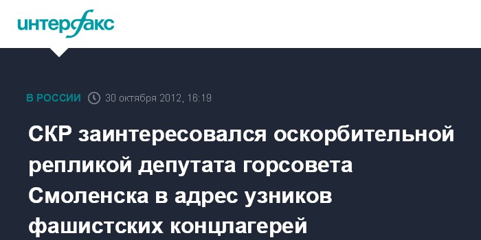 СКР заинтересовался оскорбительной репликой депутата горсовета Смоленска в адрес узников фашистских концлагерей