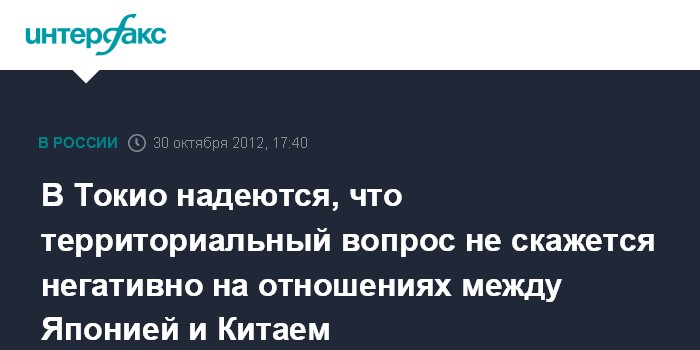 Москва. 31 октября. INTERFAX.RU – В Токио не сомневаются, что острова Сенкаку (Дяоюйдао) являются исконной территорией Японии, в то же время надеются, что эта позиция не окажет негативного влияния на отношения Японии с Китаем.