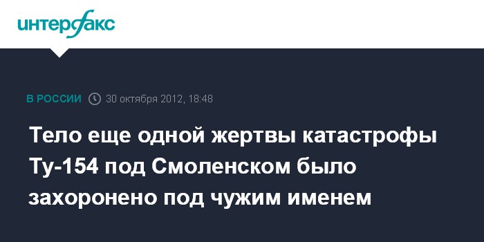 Тело еще одной жертвы катастрофы Ту-154 под Смоленском было захоронено под чужим именем