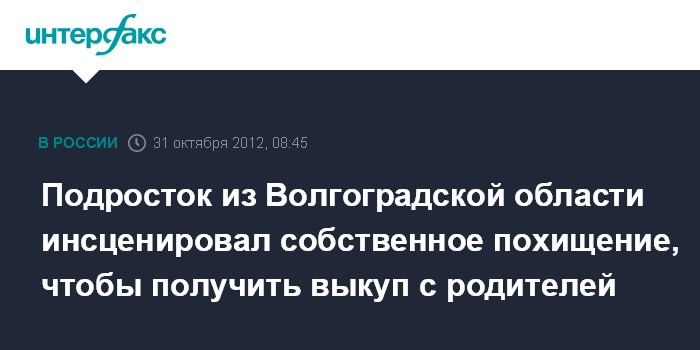 Подросток из Волгоградской области инсценировал собственное похищение, чтобы получить выкуп с родителей