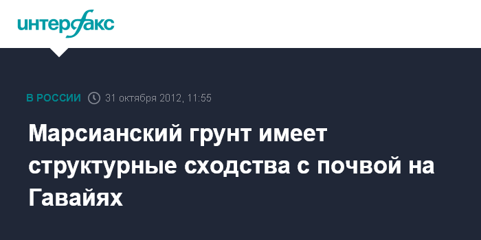 Вашингтон. 31 октября. INTERFAX.RU - Минералогический состав и структура грунта на Марсе поразительно напоминают базальтовые почвы, характерные для вулканических районов Земли, сообщили во вторник ученые из НАСА. В частности такой состав характерен для почвы Гавайских островов.
