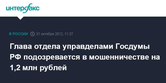Глава отдела управделами Госдумы РФ подозревается в мошенничестве на 1,2 млн рублей