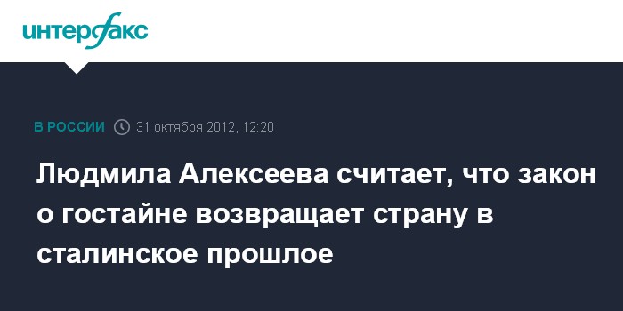 Москва. 31 октября. INTERFAX.RU - Правозащитники будут просить российское руководство не подписывать одобренный Советом Федерации закон, который расширяет понятие государственная тайна и государственная измена. "Этот закон вернет нас не просто в советское, а в сталинское прошлое", - сказала "Интерфаксу" в среду старейшая в России правозащитница, глава Московской Хельсинкской группы Людмила Алексеева.