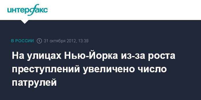 Вашингтон. 31 октября. INTERFAX.RU - Сотрудники правоохранительных органов Нью-Йорка стали чаще патрулировать улицы города в связи с ростом количества преступлений после удара урагана "Сэнди", сообщило в среду агентство Associated Press.