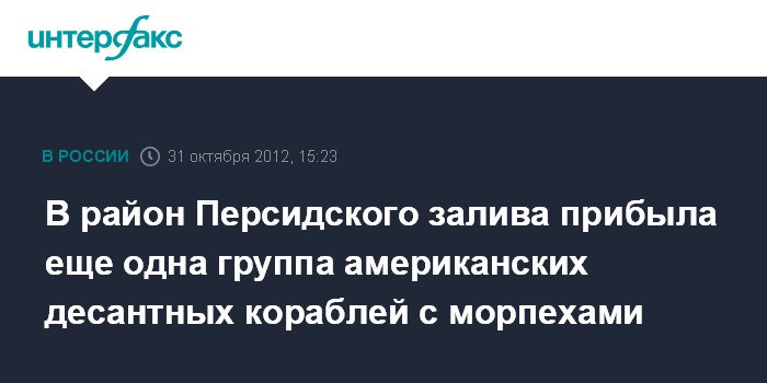 Вашингтон. 31 октября. INTERFAX.RU - Еще одна группа американских десантных кораблей с усиленным батальоном морской пехоты на борту прибыла в район Персидского залива, сообщила информационная служба ВМС США