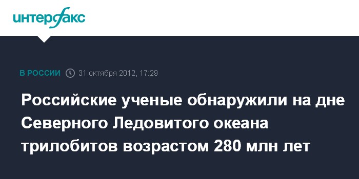 "Большим успехом экспедиции мы считаем, что был найден кусок породы, в котором сохранились останки трилобитов. Наши молодые участники экспедиции их сразу окрестили Чуком и Геком", - сказал начальник экспедиции "Арктика-2012" Олег Корнеев на пресс-конференции в Петербурге в среду.