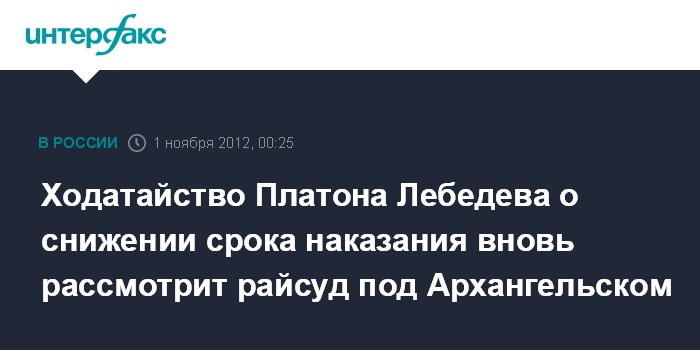 Москва. 1 ноября. INTERFAX.RU - Вельский районный суд в четверг рассмотрит повторное ходатайство бывшего руководителя МФО "МЕНАТЕП" Платона Лебедева о необходимости снизить ему срок наказания.