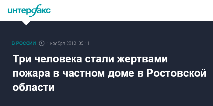 Ростов-на-Дону. 1 ноября. ИНТЕРФАКС-ЮГ - Пожар в частном доме в станице Вешинская (Ростовская область) унес жизни трех человек, сообщили в четверг агентству "Интерфакс-Юг" в пресс-службе Южного регионального центра МЧС РФ.