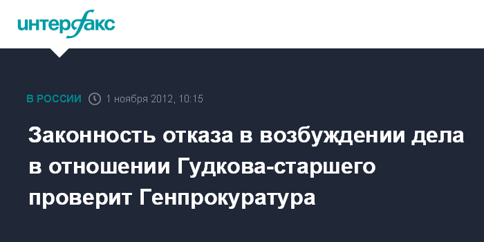 Законность отказа в возбуждении дела в отношении Гудкова-старшего проверит Генпрокуратура