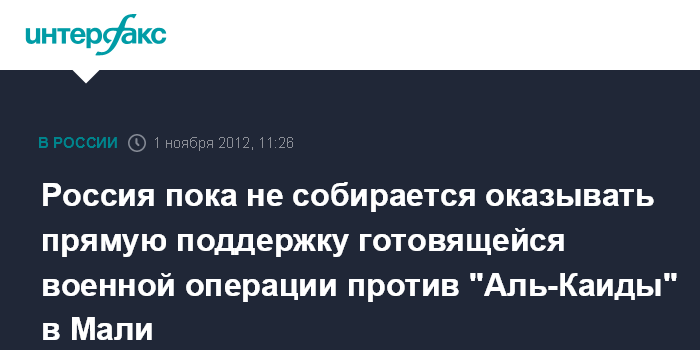 Россия пока не собирается оказывать прямую поддержку готовящейся военной операции против "Аль-Каиды" в Мали