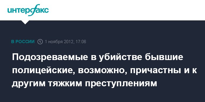 Москва. 1 ноября. INTERFAX.RU - Трое бывших московских полицейских, арестованных в четверг по подозрению в жестоком убийстве уроженца Азербайджана Сеймура Агаева, могут быть причастны к целой серии тяжких преступлений, сообщил официальный представитель СК РФ Владимир Маркин.