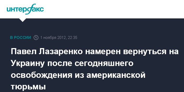 Киев. 1 ноября. INTERFAX.RU - Экс-премьер-министр Украины Павел Лазаренко выразил желание вернуться на Украину после освобождения сегодня из американской тюрьмы, сообщила адвокат Лазаренко Марина Долгопола. "Да, он выразил желание вернуться в Украину", - сказала она журналистам в четверг, сославшись на телефонный разговор с экс-премьером.