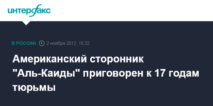 Американский сторонник "Аль-Каиды" приговорен к 17 годам тюрьмы