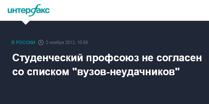 Москва. 2 ноября. INTERFAX.RU - Российский профсоюз студентов не согласен с критериями оценки вузов, попавших в рейтинг учебных заведений с низкой эффективностью.
