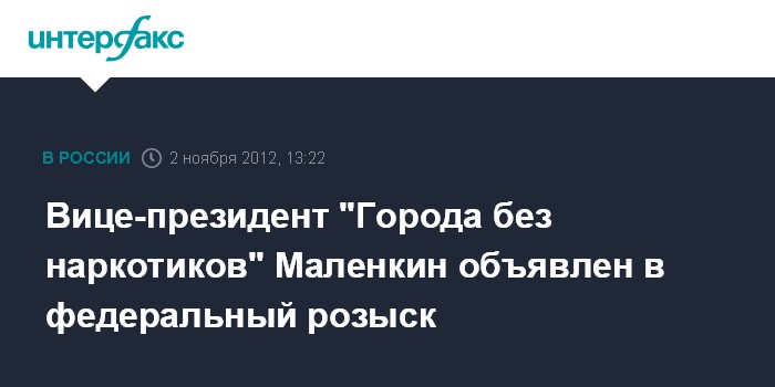 Вице-президент "Города без наркотиков" Маленкин объявлен в федеральный розыск