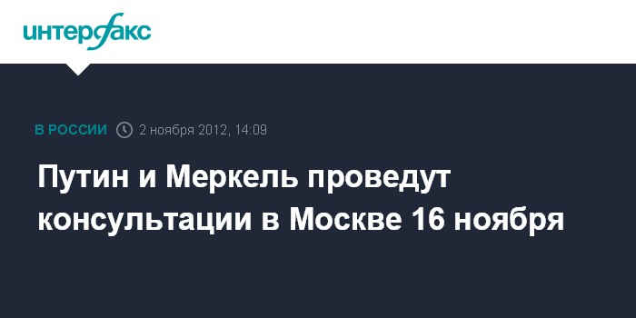 Москва. 2 ноября. INTERFAX.RU - 14 раунд российско-германских межгосударственных консультаций на высшем уровне с участием президента РФ Владимира Путина и федерального канцлера ФРГ Ангелы Меркель состоится 16 ноября в Москве, сообщили в пресс-службе Кремля.